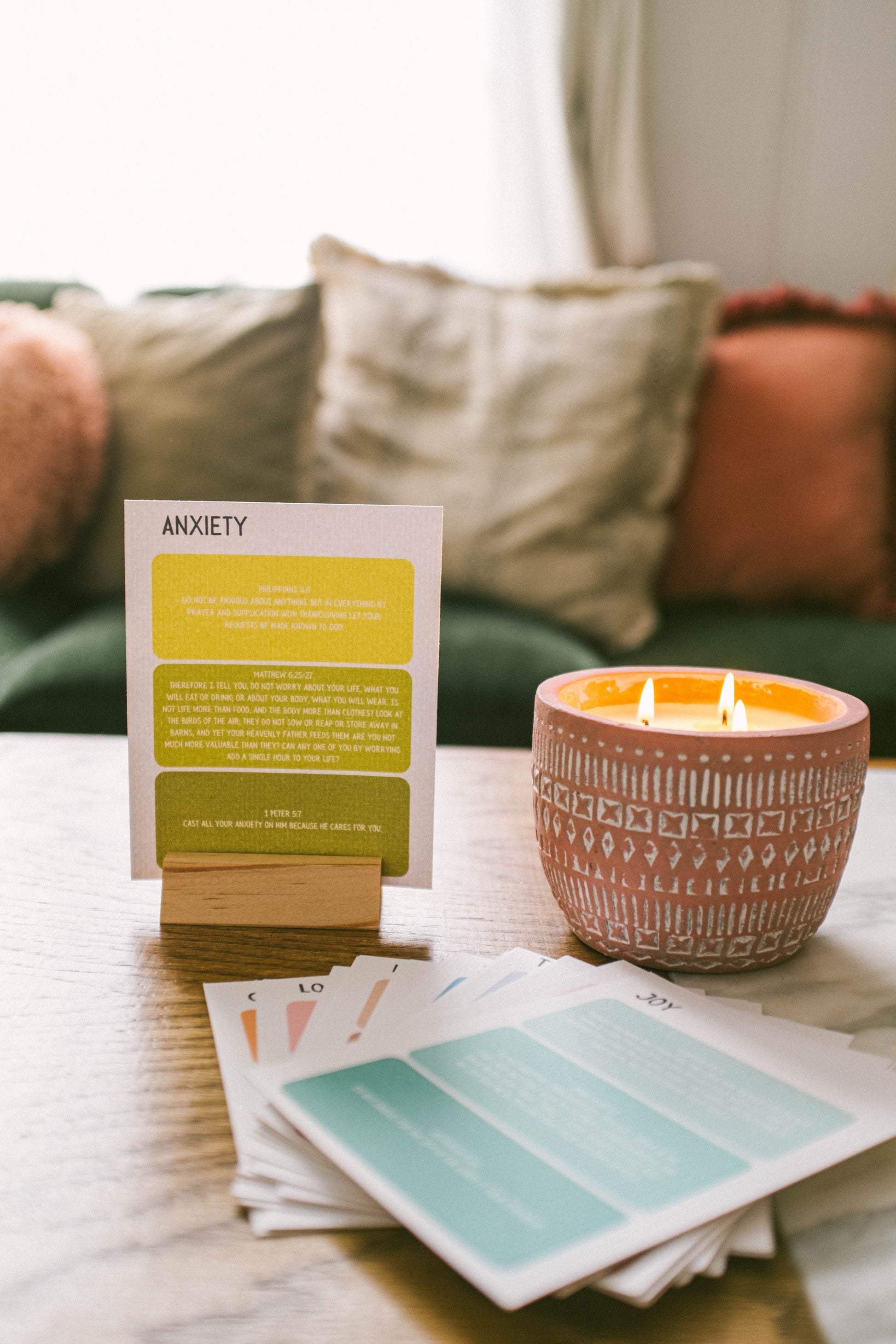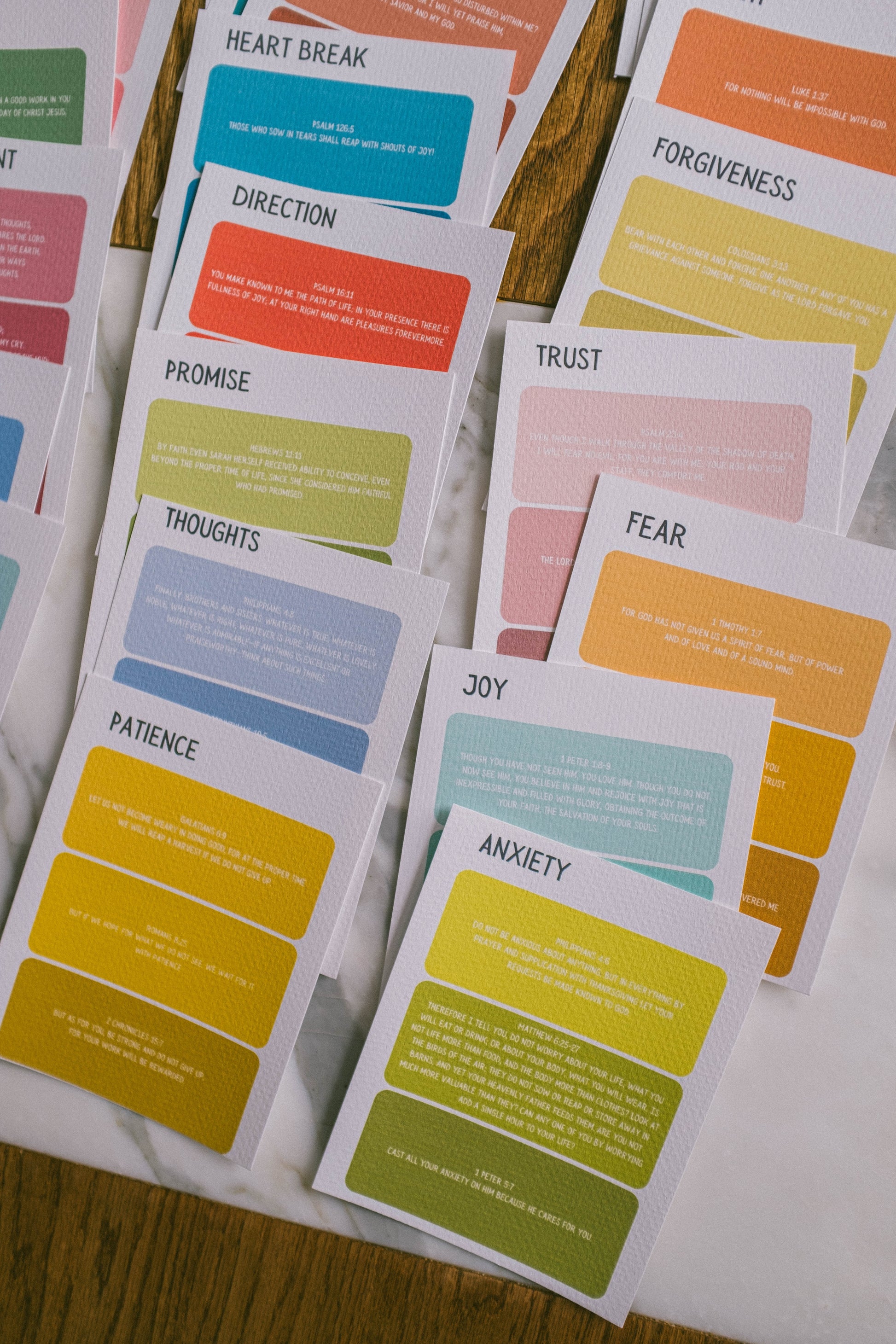 Scripture Notecards for quick topical studies. Comes with wooden stand and 24 scripture notecards.